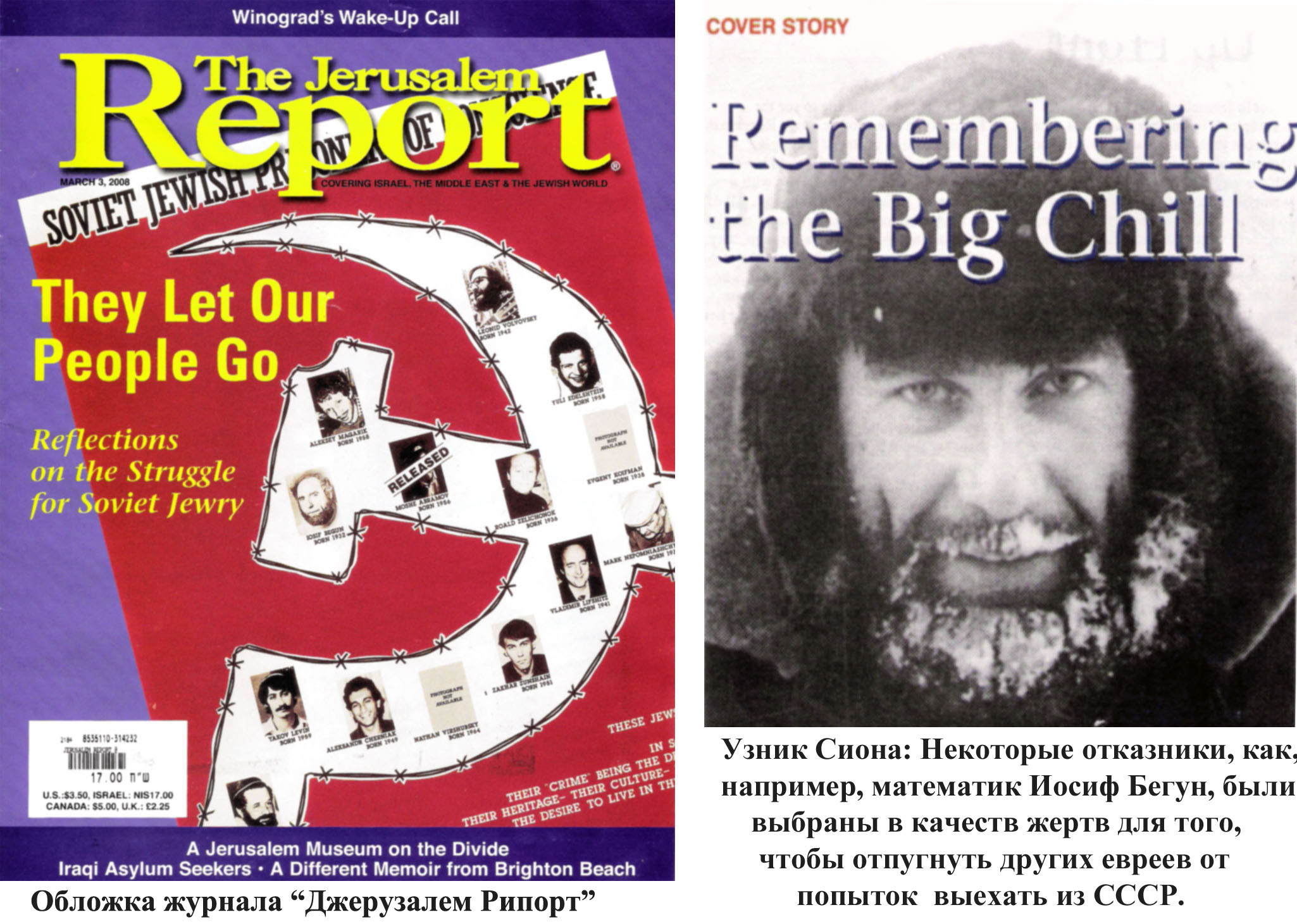 В июне 1970 г. группа доведенных до отчаяния евреев привлекла международное внимание неудавшейся попыткой угона самолета из Ленинграда в Швецию. Некоторых отказников, в том числе Щаранского и математика Иосифа Бегуна, советские власти для устрашения других евреев, планировавших подать заявления на выезд, приговорили к особо строгим наказаниям и вынудили провести годы за колючей проволокой исправительно-трудовых лагерей, в сибирской ссылке или психиатрических лечебницах. Они стали известны на западе как «Узники Сиона». Остальные были «всего лишь» лишены работы и подверглись травле. Звезд балета Валерия и Галину Пановых (он еврей, а она – нет), подавших документы на выезд в 1972 году, ждал отказ, незамедлительное увольнение из труппы солистов Кировского балета в Ленинграде и всевозможные препятствия их выступлениям вообще. Благодаря мощному общественному давлению чете Пановых было, в конце концов, позволено эмигрировать в 1974 году. Позже они развелись, а семидесятилетний Панов и поныне преподает балетное искусство в Израиле.