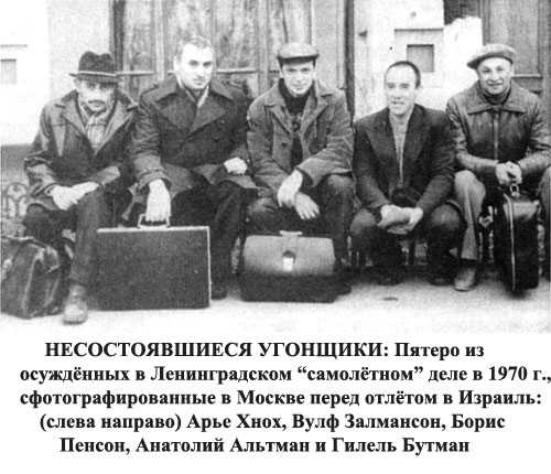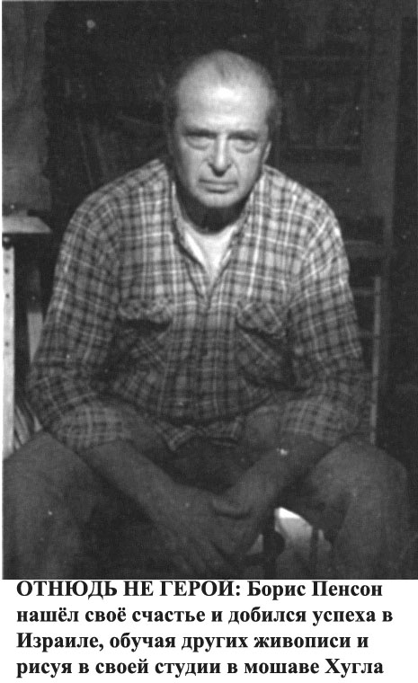 62-ЛЕТНИЙ ХУДОЖНИК БОРИС ПЕНСОН ОТБЫЛ ДЕВЯТЬ ЛЕТ советской каторги за участие в неудавшемся похищении 12-местного самолета 15 июня 1970 года из ленинградского аэропорта Смольное - отчаянной попытке уехать в Израиль и привлечь внимание к положению евреев в Советском Союзе. В декабре 1970 года его судили в Ленинграде вместе с еще одиннадцатью подсудимыми на первом из серии так называемых «самолетных процессов». Второй ленинградский процесс прошел в мае 1971 г. Десятки сионистов, не замешанных в заговоре, попали в сети КГБ. Была устроена серия показательных процессов, где их судили и признали виновными. Самый тяжкий приговор - 10 лет каторжных работ - был вынесен Гилелю Бутману, обсуждавшему план операции с пилотом Дымшицем.