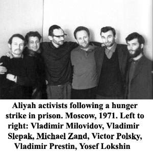 In contrast to Leningrad, in Moscow initiatives usually came not from the youth but from veteran Zionists, who had spent time in prison camps or in jail. Among these were Meir Gelfond, Vitaly Svetchinsky, David Khavkin and Israel Mints, whose group was joined by Yosif Begun and Vladimir Slepak, of the younger generation. Moscow Zionists had ties with the dissident movement, foreign journalists and diplomats.