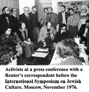 An international symposium, titled “Jewish Culture in the USSR: Its Present State and Prospects,” was planned to be held in Moscow on December 21-23, 1976. The organizing committee was headed by Professor Venyamin Fain and included Vladimir Prestin and Mikhail Chlenov, among a total of 13 activists from 10 cities. Invitations were sent to relevant official Soviet organizations, as well as to scholars and important cultural figures from Israel, England, Sweden and the United States.