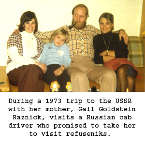By the time she made that ’73 UNO trip to the USSR, accompanied by her daughter Gail Raznick, she was well-read on the Soviet Jewry issue. She’d been briefed by Glenn Richter and other Union of Councils’ members and been given contact names.