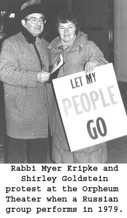 As her involvement deepened, she made more contacts and increased the scope of her activities. She organized Omaha’s Free Soviet Jewry Committee and served on the board of the national Union of Councils for Soviet Jews. She led demonstrations (including ones outside the Orpheum Theatre and Joslyn Art Museum, using the appearances of Russian performing artists as the pretext or stage to protest Soviet policies), she walked in marches and she participated in vigils. She called on members of Congress. She attended meetings in Washington, D.C. and in Madrid, Spain (for the Helsinki Accords). She raised awareness and funds.
