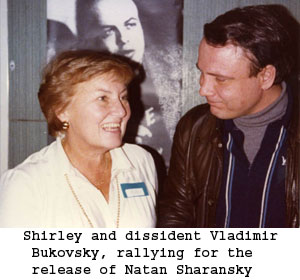 Shirley and Buddy were excellent examples. Their Congressmen and Senators became their advocates. Shirley knew which political buttons to press, and did so on behalf of individual refuseniks and prisoners and of the Jackson-Vanik Amendment--the landmark legislation linking Jewish emigration with trade credits for the USSR.”