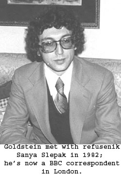 “One of Levich’s boys had been kidnapped off the streets in Moscow and sent to Siberia, just for being Levich’s son,” Goldstein said. “We became very good friends. While we were in Moscow Levich kept giving my name out and it became known, and before I knew it we were meeting Vladimir Slepak. All of them were intertwined. While we were at Slepak’s, people came in and out, including a woman who was a legend, Ida Nudel.”