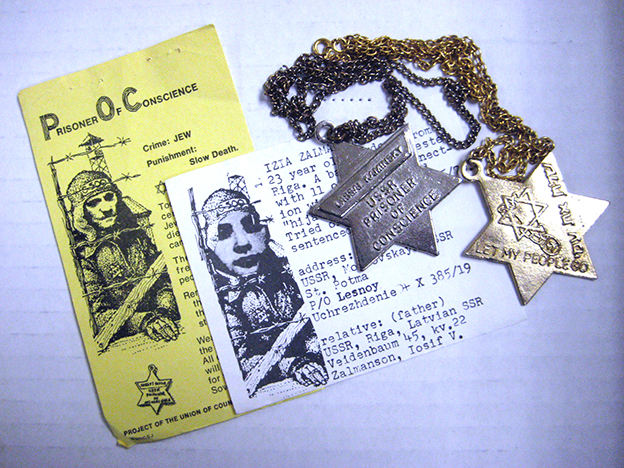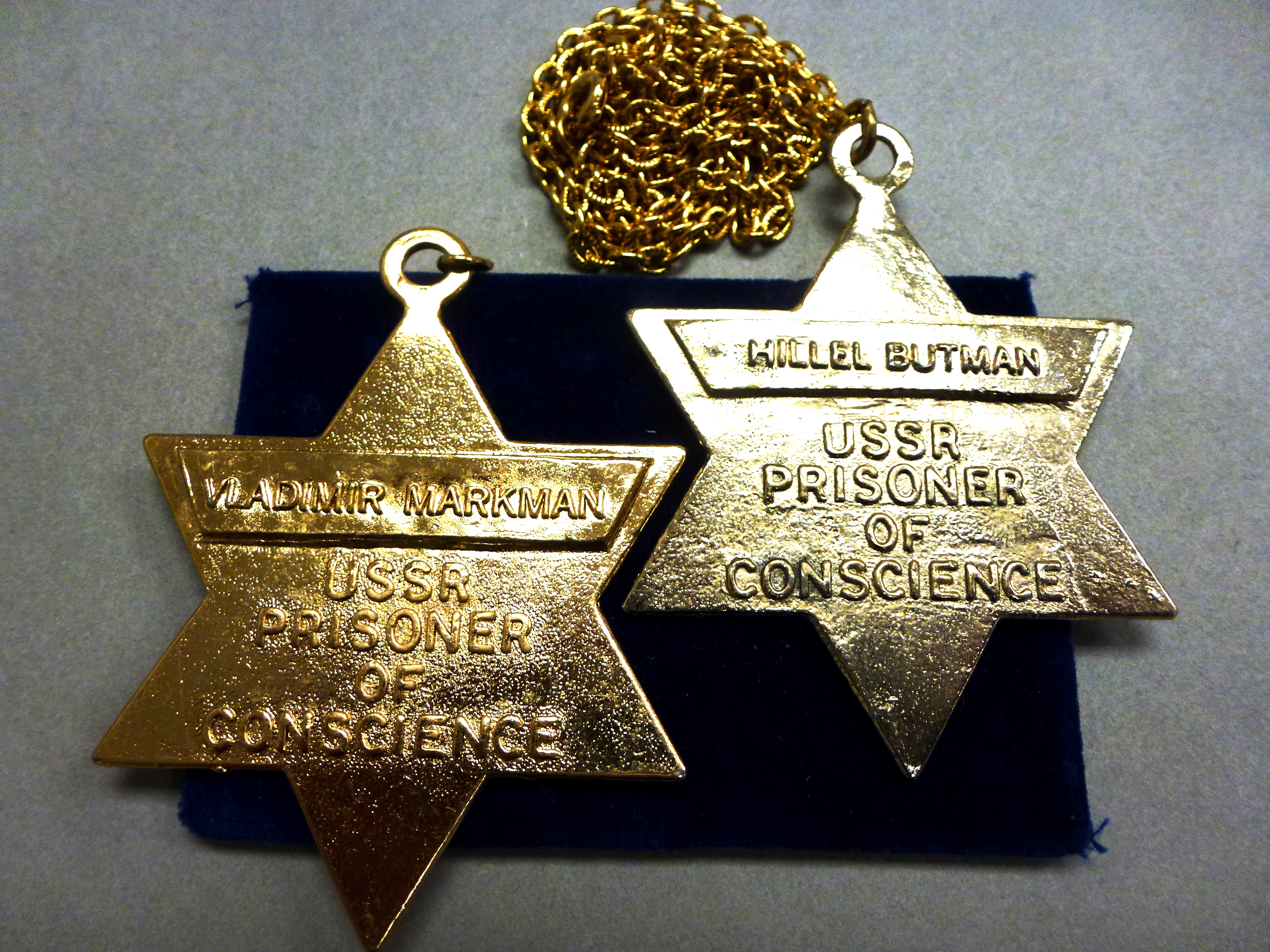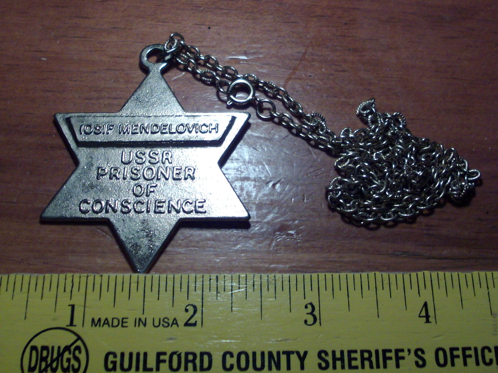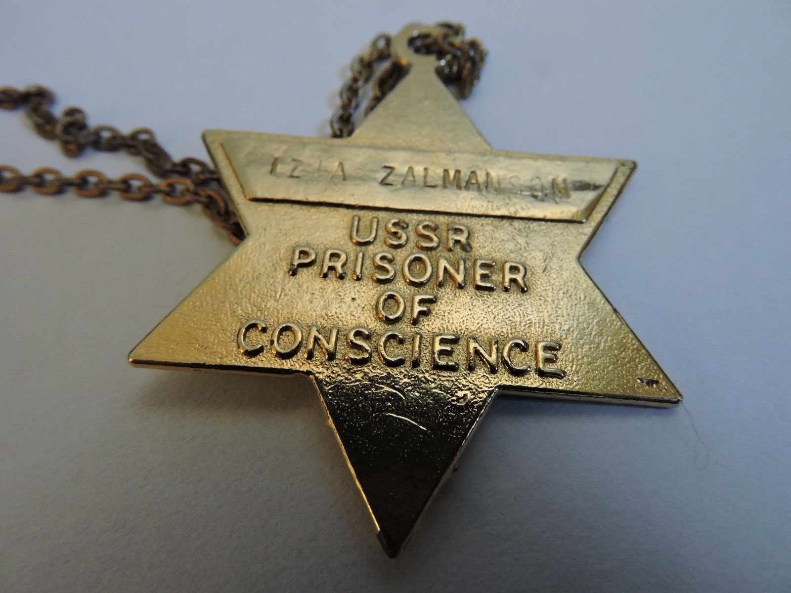 Медальоны появились в начале 1973 года. Их выпускал Совет Южной Калифорнии за Советских евреев (Southern California Council on Soviet Jews). Идея выпуска медальонов и их дизайн принадлежат одному из руководителей Совета Си Фрумкину. Он же нашел и производителя, изготовлявшего медальоны по цене, позволявшей дешево продавать их. Всего за время активных действий в поддержку репатриации советских евреев было распространено около 200000 таких медальонов. Медальоны представляют собой звезду Давида размером 5,08 х 6,35 см, на одной стороне которой находится надпись «LET MY PEOPLE GO» (Отпусти народ мой – слова, с которыми обращался Моисей к фараону, требуя освобождения евреев из египетского рабства. На той же стороне отчеканена звезда Давида, закованная в цепи. На другой стороне указано имя узника Совести и надпись «USSR PRISONER OF CONSCIENCE») (СССР узник совести». Медальон был закреплен на цепочке, длиной 61 см. Автору настоящей заметки так и не удалось найти список узников совести, с именами которых были выпушены медальоны. Долгие поиски в интернете позволили составить следующий список людей, которым были посвящены медальоны: Эдуард Кузнецов, Сильва Зальмансон, Израиль Зальмансон, Анатолий Альтман, Лейб Ханох, Йосиф Менделевич, Борис Пенсон, Гиллель Бутман, Юрий Вудка, Михаил Корнблит, Райза Палатник, Борис Азерников, Владимир Маркман, Юурий Бринд, Лассаль Каминский, Лев Ягман. Ниже приведены фотографии медальонов, найденные на различных интернетовских сайтах, по-видимому этот список не может претендовать на полноту. Автор был бы признателен читателям, которые могли бы сообщить ему, кому еще из узников совести были посвящены медальоны, а также любую информацию о медалях и значках, посвященных борьбе за репатриацию советских евреев.