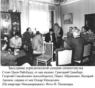 О московском симпозиуме «Отказ по режиму».Эмиль Менджерицкий, д.т.н.I В конце ноября 1987 г. в Москве был проведен симпозиум по проблеме «Отказ в выезде из страны по режимным соображениям. Юридические и гуманитарные аспекты» (сокращенно «Отказ по режиму»). Идея проведения этого симпозиума возникла в конце 1986 – начале 1987 г. в связи с двумя противостоящими друг другу обстоятельствами. С одной стороны, общее изменение обстановки в СССР (провозглашение «перестройки») создавало тогда надежду на возобновление – в известных пределах – еврейской эмиграции. С другой стороны, вышедшее в свет в августе 1986 г. постановление СМ СССР № 1064 узаконивало возможность для советских властей удерживать в стране на неопределенный срок лиц, желающих эмигрировать, но имевших в своем прошлом какое-либо отношение к секретным работам. В связи с этим вопрос об ограничениях выезда по секретности приобрел значение одной из центральных проблем борьбы за право евреев на эмиграцию. (Так сложилось, что для эмиграции армян, немцев и др. эта проблема оказалась менее актуальной). Из-за указанного постановления, опиравшегося, казалось бы, на соответствующие статьи Пакта о гражданских и политических правах и Хельсинского соглашения, эта проблема представлялась достаточно сложной и требующей весьма фундаментального рассмотрения, что и подсказало мысль о проведении симпозиума. В январе 1987 г. эта идея была сформулирована группой еврейских отказников с большим стажем в составе Павла Абрамовича, Эмиля Менджерицкого, Владимира Престина и Цили Райтбурд, которые выступили тогда с проектом соответствующего обращения. Сколь ни очевидной была эта инициатива, она далеко не сразу овладела массами отказников. Часть из них (группа Виктора Браиловского и др.) посчитала идею об открытом обсуждении режимного отказа опасной и даже провокационной. Другой группе не понравилось предложение не обсуждать конкретные сведения о месте и характере трудовой деятельности (направленное на снятие причины для вышеуказанных опасений). Она расценила такой подход как беззубый. Неучастие этих групп существенно осложнило проведение задуманного мероприятия.