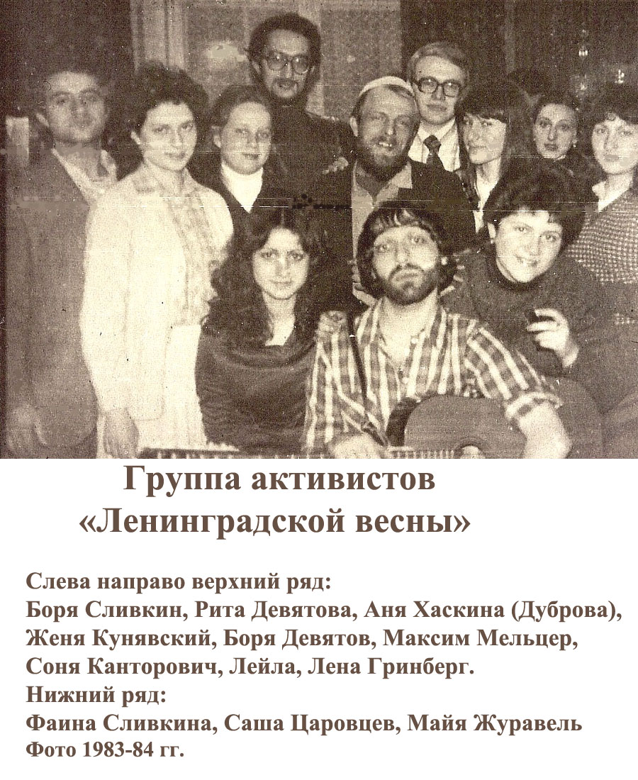 Девятов строил нас в ячейки по пять. Каждый из пяти возглавлял другую пятерку. Каждый из пяти отвечал за один из пунктов нашей программы: изучение иврита, Торы, истории народа, культуры и традиций, ну и организацию субботних пятниц. Вот так возникло то, что позже получило название «Ленинградская весна», и, как потом выяснилось, нас набралось около 200 человек!