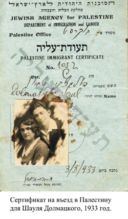 Два брата мамы и два брата отца уехали в Палестину в 1932-1933 годах. План был простой: путь сначала старшие братья встанут на ноги на новом месте, а потом и вся семья переберется. Мамин отец - Эфраим Долмацкий, писал из Бендер своим сыновьям Шмуэлю и Шаулю в Палестину 1 июля 1936 года: «Мы знаем о страшных днях, которые вы переживаете с тех пор, как начались арабские беспорядки. Газеты каждый день печатают ужасные сообщения о том, что происходит у вас. И в каждом сообщении – о жертвах. Мы должны быть сделаны из стали, чтобы выстоять в то время, пока арабы еще верховодят у вас».