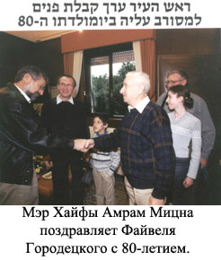 В 2000 году в честь 80-летия Файвеля Городецкого по инициативе заммэра Хайфы Валентина Файнберга был организован торжественный прием юбиляра. Мэр города Амрам Мицна долго распрашивал ветерана «Ха-Шомер ха-Цаир» о прожитых годах и о борьбе за алию. Файвель сказал: «Не понимаю, как можно жить в Израиле и не быть довольным. Нужно жить здесь не только, чтобы брать у государства, но и чтобы давать стране».
