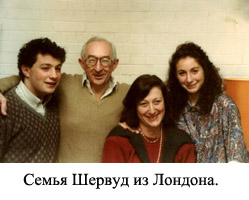 Не только организации, но и отдельные люди выражали нам свою солидарность и поддержку. Было приятно получить в глухой период начала 1980-х письмо от Алана Шервуда – бизнесмена из Лондона. У нас установились теплые семейные отношения. Алан с гордостью рассказывал о своей сплоченной семье, о детях Майкле и Деборе, о любви к Израилю. После нашего приезда в Израиль Алан написал: «После всех этих лет ваш приезд кажется чудом». Через несколько месяцев после нашей алии Алан прибыл в Израиль – так мы впервые увидились лицом к лицу в гостинице Дан Аккадия в Герцлии. В последующий приезд мы с удовольствием приняли их в нашей квартире. Друзья юности Алана, живущие в Хайфе – д-р Сирел и Ади Гласман, стали нашими добрыми друзьями.