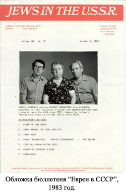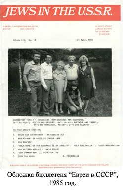 Информация о нашей семье четыре раза появлялась на страницах еженедельного бюллетеня «Евреи в СССР» (“Jews in the USSR”), издававшегося Национальным Комитетом в поддержку советского еврейства (National Council for Soviet Jewry of the UK and Ireland). В марте 1984 года этот еженедельник назвал Файвеля Городецкого «старейшим отказником», который дольше всех остальных (то есть с 1957 года) добивается разрешения на алию.
