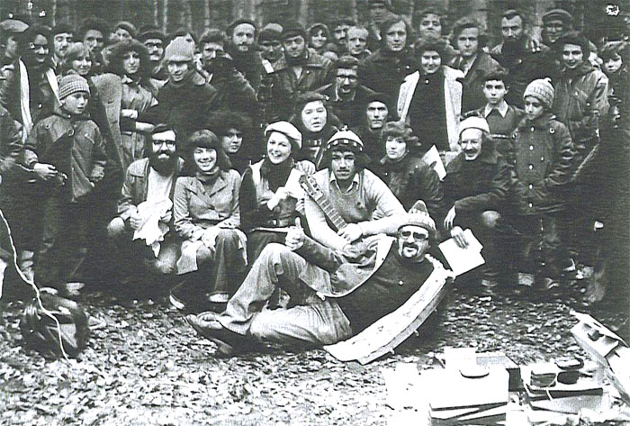 Возлежит отказник Марк Терлицкий.Сидят на бревне, слева направо: